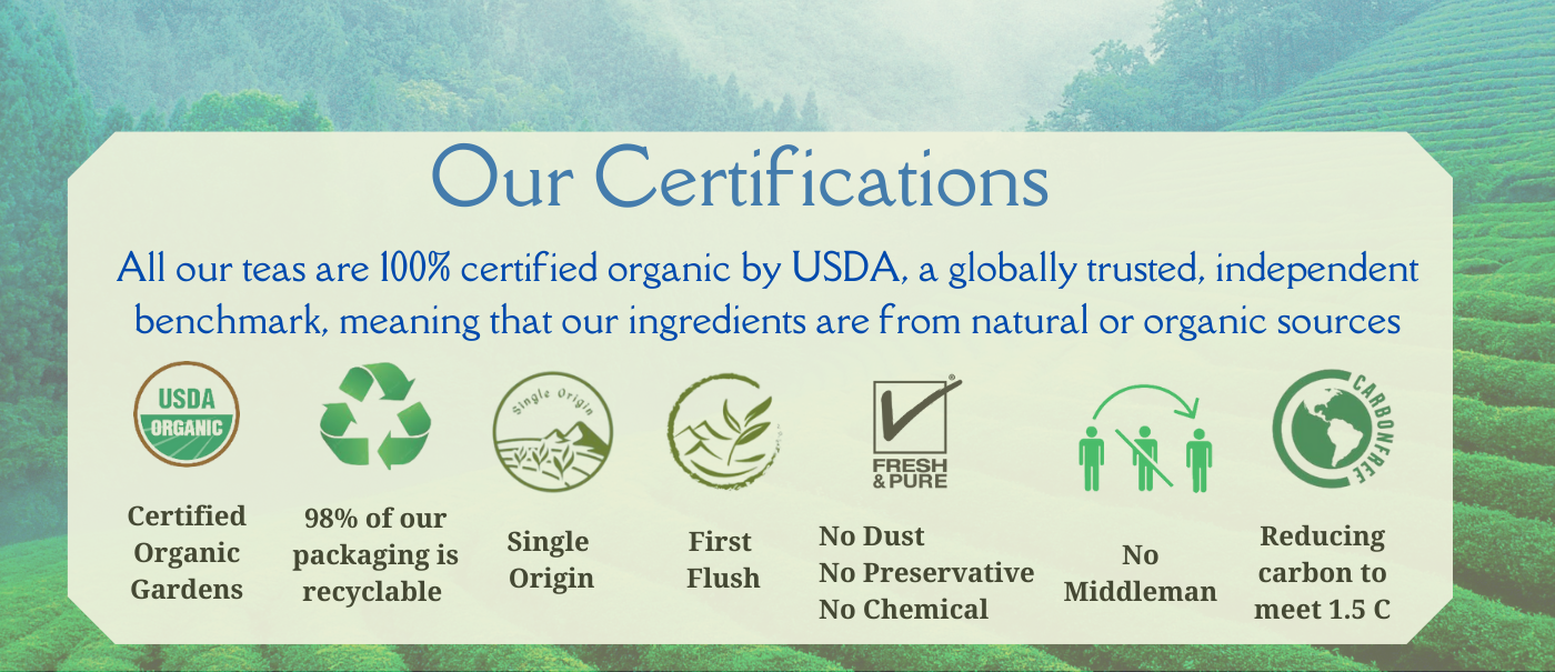 At Radhikas Fine Teas, 'Organic' is not a fad, but a biodynamic process wherein each leaf is free from fertilizers, pesticides, preservatives or any synthetic chemical for that matter.