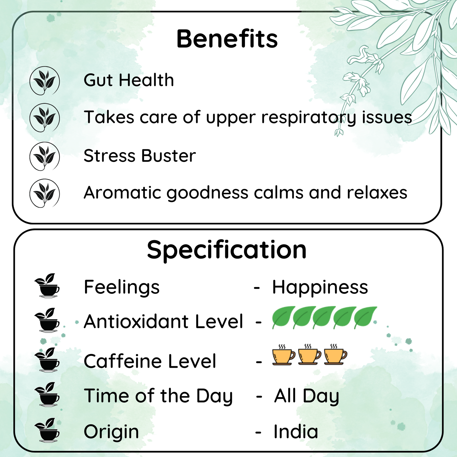 Whole-Leaf Green Tea, Fennel, Rose Petals, Mint, Cardamom